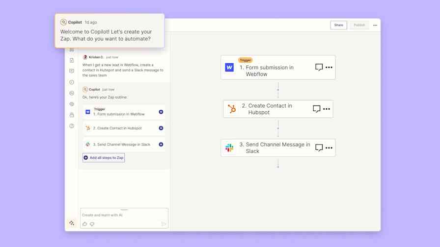 Fortunately, that job is made a lot easier with AI—and more specifically, Zapier Chatbots. With it, you can create AI-powered chatbots for a variety of use cases, from capturing and nurturing leads to editorial assistants that can give polished feedback—without knowing any code. Â
